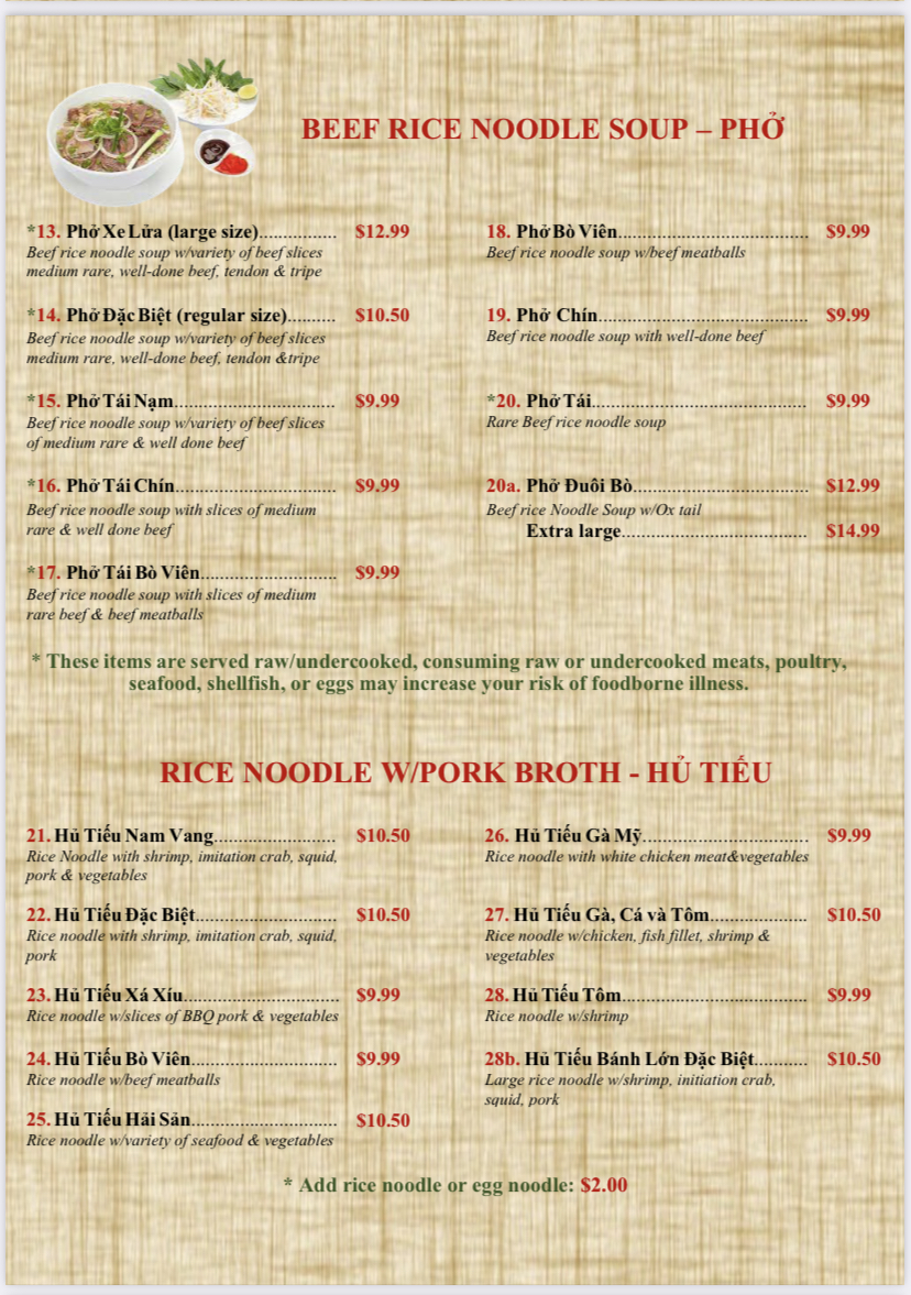 Welcome to Que Huong Restaurant, a delightful culinary haven nestled in the heart of Phoenix, Arizona. This authentic Vietnamese restaurant is a treasure trove for food lovers craving the vibrant and aromatic flavors of Vietnam. As you step into this hidden gem, you're greeted not only by the tantalizing scents wafting from the kitchen but also by an exceptionally friendly and attentive staff that makes you feel right at home.